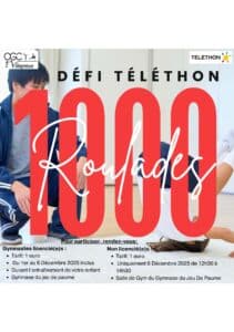 A cette occasion le club s’ est engagé: Le défi des 1000 roulades. Au gymnase du Jeu de Paume, salle de gymnastique, le samedi 6 décembre 2025 de 12h30 à 14h30.
