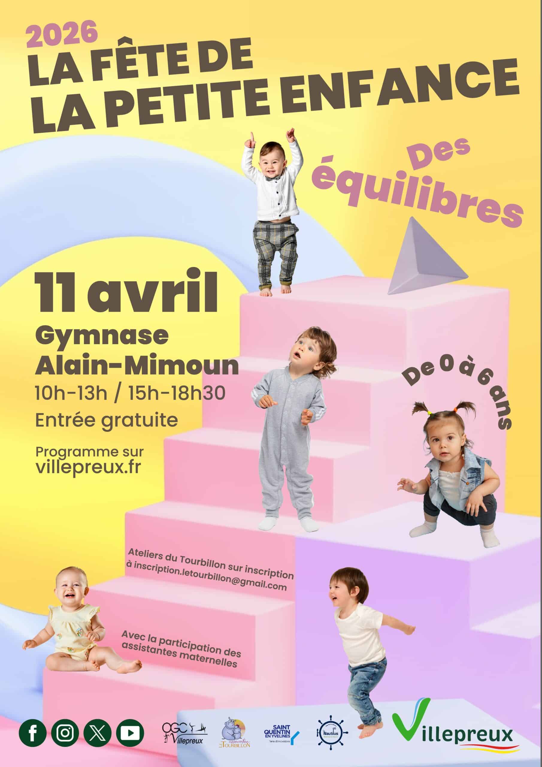 La Fête de la Petite Enfance revient à Villepreux le samedi 11 avril, de 10h à 13h et de 15h à 18h30, autour du thème national « Des équilibres ».